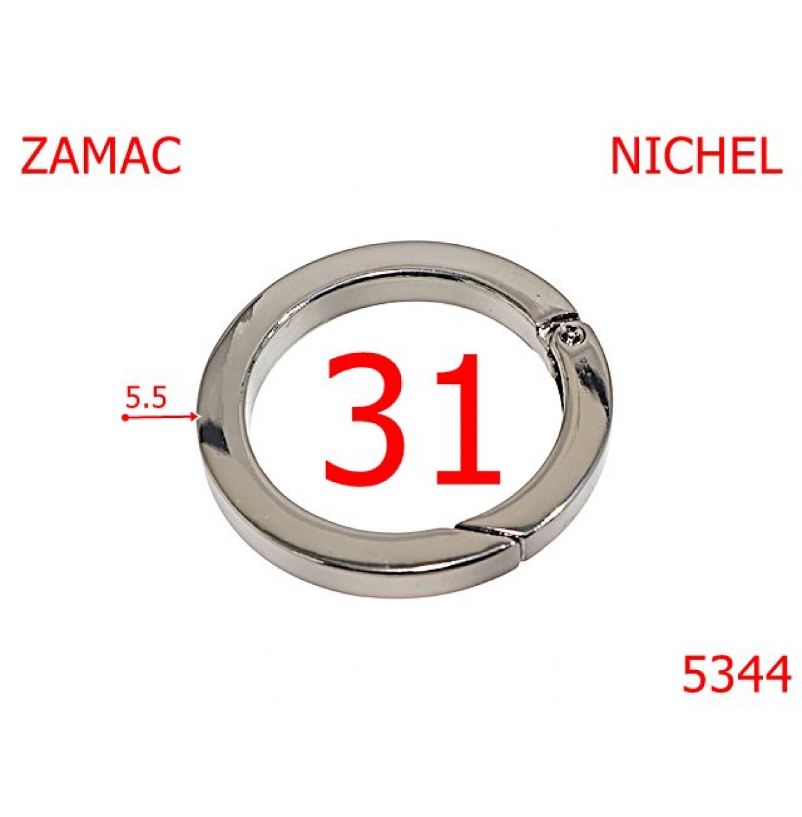 5344/Inel Carabina Rotund Pentru Marochinarie-31-mm-zamac--nichel--23D1